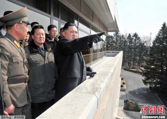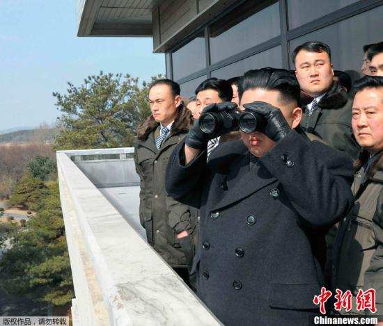 資料圖:由朝中社3月4日公布的照片顯示,朝鮮人民軍最高司令官、朝鮮黨和人民的最高領導者金正恩視察板門店。