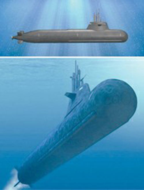 該型艇長(zhǎng)63米,寬6.4米,吃水6米,水面航行速度超過l0節(jié),以電池模式潛航時(shí)速度超過20節(jié),以AIP模式潛航時(shí)航速5節(jié),航程1000海里,水面排水量1700噸,水下排水量1900噸,艇員編制17~26人。采用X型艉舵,四個(gè)舵面均有垂直舵和水平舵的雙重功能,且每個(gè)舵面都可以獨(dú)立控制,大大提升潛艇機(jī)動(dòng)性能。
