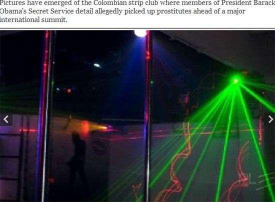 《紐約每日新聞》報(bào)道稱,美國(guó)特勤局特工曾光顧這家位于哥倫比亞卡塔赫納市的名為Pley的俱樂(lè)部,一邊豪飲啤酒和威士忌酒,一邊看著舞臺(tái)上的女子跳鋼管舞,并從中選擇過(guò)夜床伴。許多特工都會(huì)帶著妓女返回下榻的卡里比酒店(Hotel Caribe),該酒店是美國(guó)特勤局、軍方以及美國(guó)記者常駐之地。