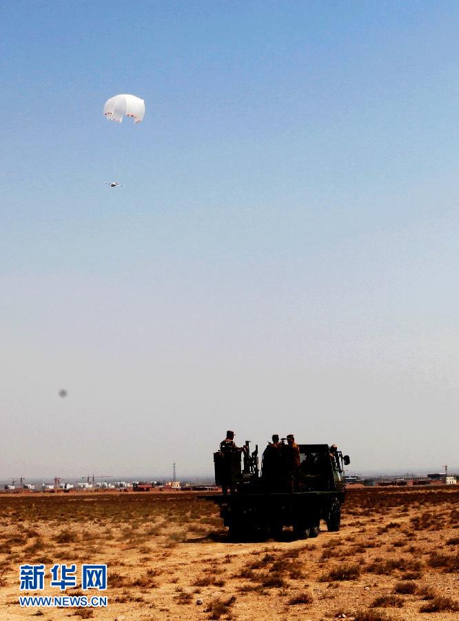 某型測(cè)繪無(wú)人機(jī)返回地面時(shí),自動(dòng)打開(kāi)降落傘,空降到指定地域(4月16日攝)。新華社發(fā)(黃寶峰 攝)
