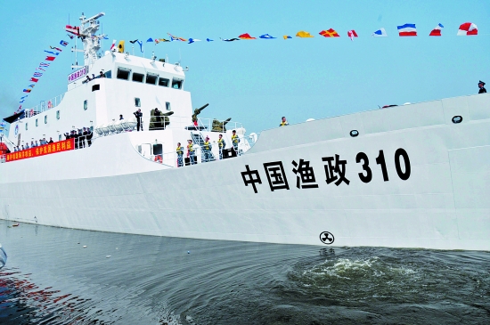 中國漁政310船總噸位2580噸,續(xù)航力6000海里,持航60個晝夜,可駛往國際無限航區(qū),最大航速可達每小時22海里。該船配備有現(xiàn)代化的設(shè)備,可搭載直升機。該漁政船首航隨即奔赴我國釣魚島海域開展?jié)O政巡航執(zhí)法管理工作;2012年2月至3月期間,該漁政船完成今年度首次南海巡航執(zhí)法任務(wù)。