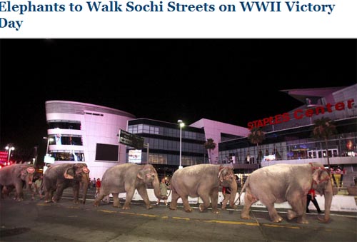 據(jù)俄新社報(bào)道,俄羅斯國(guó)家馬戲公司日前透露,為了慶祝衛(wèi)國(guó)戰(zhàn)爭(zhēng)勝利67周年,來(lái)自俄羅斯一著名馬戲團(tuán)的象群將于5月6日在索契的大街上巡游。