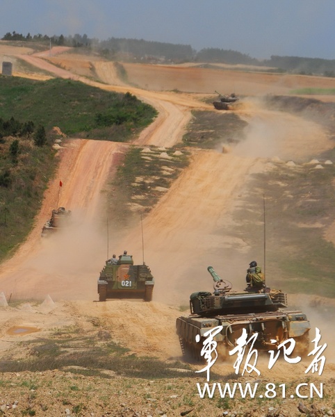 南京軍區(qū)某部把部隊拉到野外生疏地域展開實兵檢驗性演習(xí),錘煉復(fù)雜電磁環(huán)境下部隊遠(yuǎn)程機動、指揮控制、偵察預(yù)警和火力打擊能力。圖為4月下旬,該部坦克梯隊向演習(xí)地域開進(jìn)。(龐祥川)