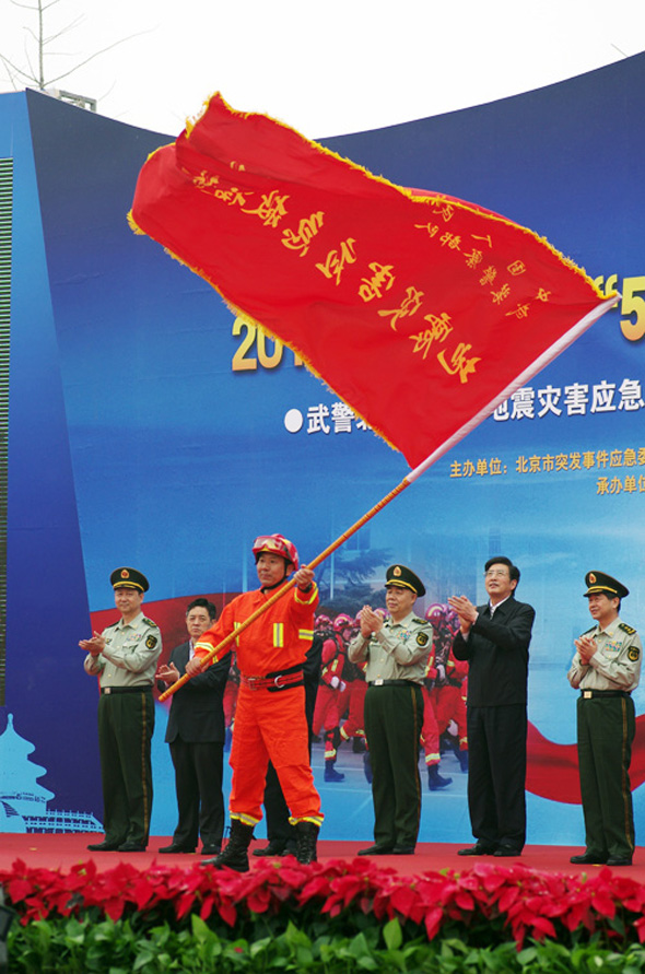 《人民武警報(bào)》報(bào)道(漆錫、邢佩偉)5月12日是我國(guó)第四個(gè)“防災(zāi)減災(zāi)日”。上午,武警北京地震災(zāi)害應(yīng)急救援隊(duì)成立儀式在京舉行。北京市市長(zhǎng)郭金龍,武警部隊(duì)政委許耀元、參謀長(zhǎng)牛志忠及北京總隊(duì)有關(guān)領(lǐng)導(dǎo)出席。
