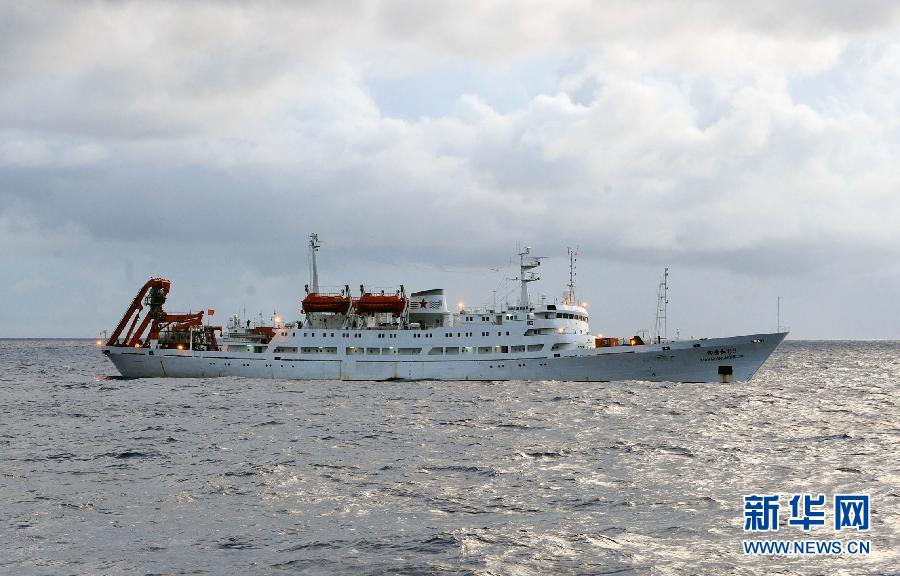 6月19日,成功完成下潛任務(wù)的“蛟龍”號母船“向陽紅”號在海上航行。