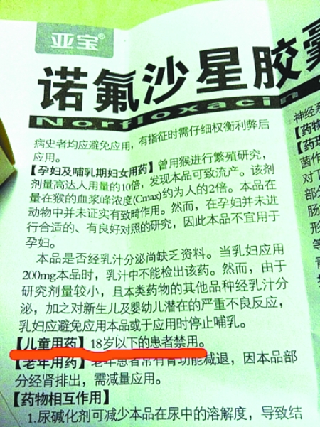 “我的孩子四五歲時(shí)經(jīng)常拉肚子,聽(tīng)朋友說(shuō)吃諾氟沙星管用,我就給孩子吃了這藥,前后共吃了十多粒。孩子現(xiàn)在身高明顯比同學(xué)矮許多。有什么補(bǔ)救措施嗎?做媽的后悔莫及。求懂醫(yī)的解答!”近日,一名叫“胡說(shuō)的西紅柿”的網(wǎng)友在某論壇發(fā)帖求助。