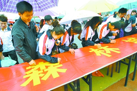 大學生在創(chuàng)建森林城市工作啟動儀式上簽名