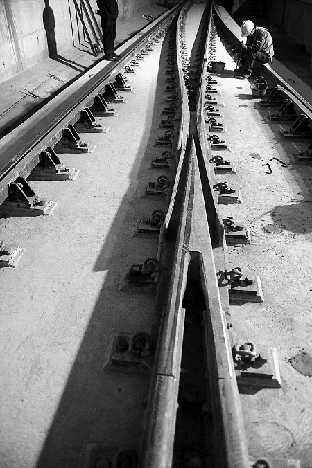 上圖 鄭州地鐵1號線中原東路站暗挖區(qū)間的整體道床(4月16日攝)。