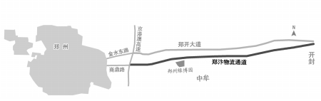 鄭汴物流通道與鄭開大道平行,起點位于鄭東新區(qū)商鼎路與京港澳高速分離式立交處,終點位于開封市宋城路與金明大道交叉口轉(zhuǎn)盤處,其中,鄭州市境內(nèi)全長32.06公里,開封段長12.57公里。