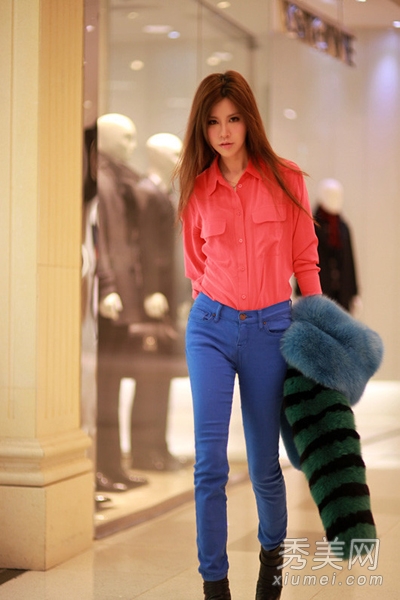 撞色搭配時尚搶眼,特別有視覺沖擊力,紅色簡約襯衫搭配藍色小腳褲,鮮明的色彩對比,想不成為焦點都難呢。