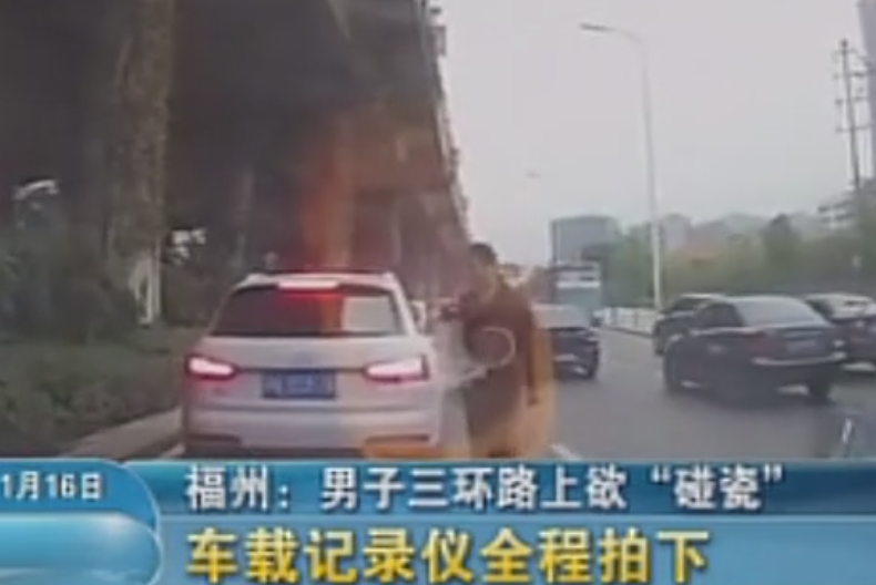 實(shí)拍男子欲“碰瓷” 演技浮夸 司機(jī)淡定繞過