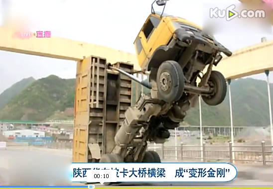 貨車被卡橋梁下成“變形金剛”