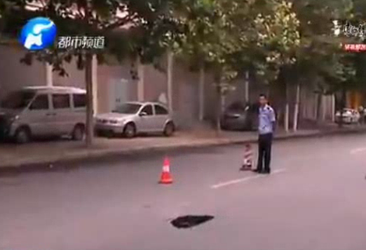 路面突現(xiàn)一小洞 內(nèi)藏2米大坑
