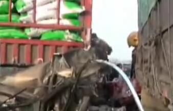 十車(chē)連環(huán)撞 轎車(chē)被擠扁