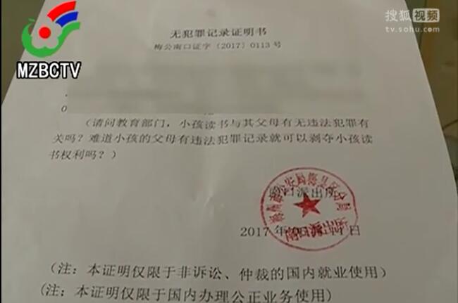 小孩入學(xué)需家長無罪證明 派出所霸氣懟回