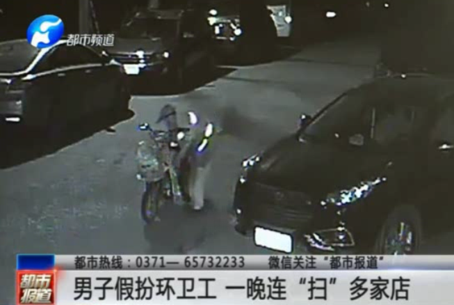 假扮環(huán)衛(wèi)工 一晚連“掃”多店