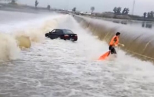 轎車被困漫水橋 眾人來救援