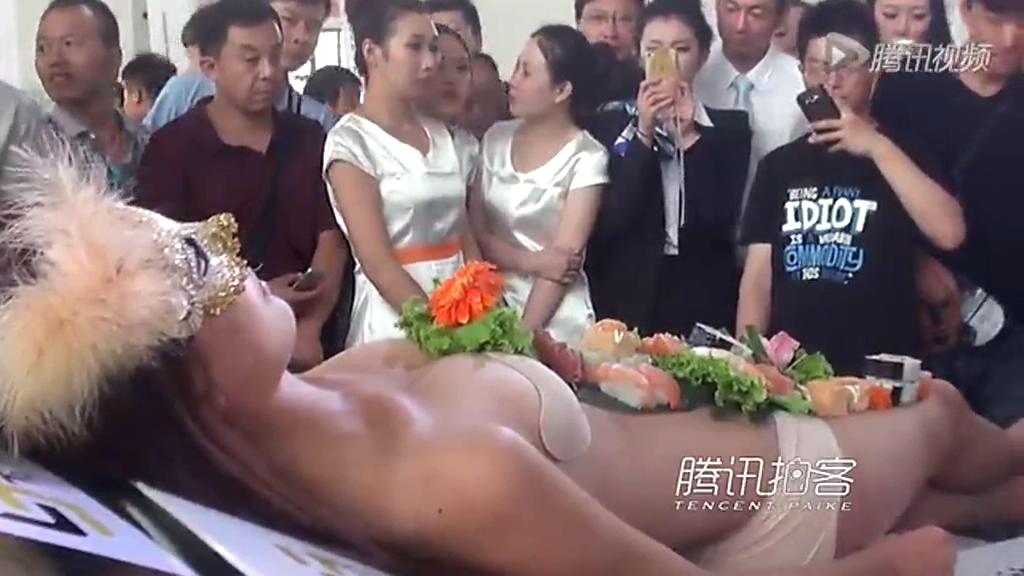 沈陽(yáng)車(chē)展現(xiàn)“女體盛壽司宴”現(xiàn)場(chǎng)試吃