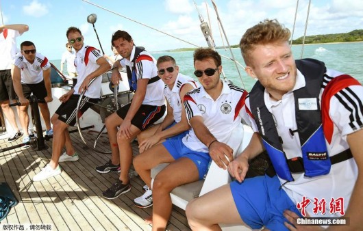 2014年6月10日,巴西圣安德烈,2014巴西世界杯前瞻,德國(guó)隊(duì)賽前放松乘船出游。