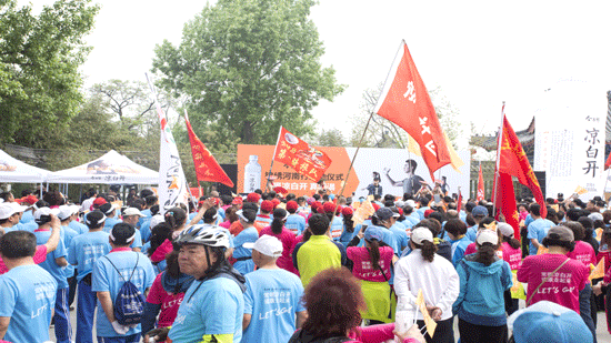 簡短的啟動儀式和熱身活動后,一聲發(fā)令槍響起,只見開封府的“包大人”和主持人孟湛一起帶領來自各行各業(yè)的數(shù)千名運動愛好者齊步出行,由此也揭開了名嘴孟湛之前“黑幕”的謎底。
