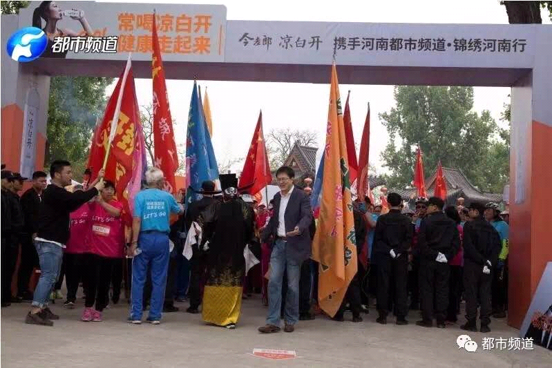 4月15日上午8:30,今麥郎涼白開攜手河南都市頻道“錦繡河南行”大型公益活動在開封·萬歲山大宋武俠城舉行。