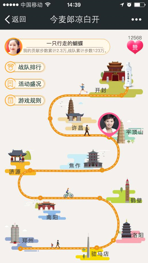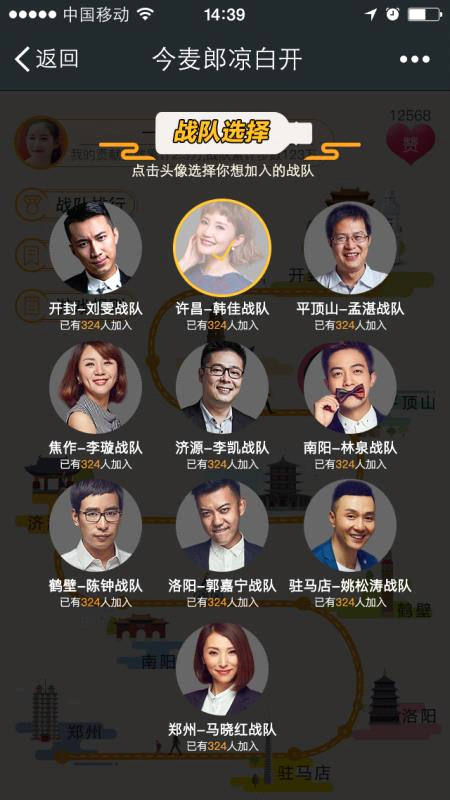 在河南十大名嘴戰(zhàn)隊中選擇一個你要支持的戰(zhàn)隊加入,即可為該戰(zhàn)隊捐贈當天的微信運動步數(shù),該戰(zhàn)隊獲得用戶捐贈步數(shù)后可在規(guī)定的線路中前進,到達終點為獲勝。