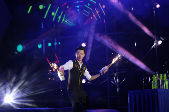 所謂壓軸狂歡,是臺(tái)下觀眾的飽滿熱情—花式調(diào)酒更美味,臺(tái)上臺(tái)下齊歡樂(lè),調(diào)酒師現(xiàn)場(chǎng)表演花式調(diào)酒,臺(tái)下觀眾有眼福更有口福。