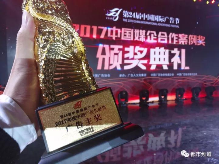 在2017中國(guó)廣告長(zhǎng)城獎(jiǎng)·廣告主獎(jiǎng)之媒企合作案例獎(jiǎng)?lì)C獎(jiǎng)現(xiàn)場(chǎng),河南都市頻道榮獲6項(xiàng)營(yíng)銷大獎(jiǎng)。都市頻道團(tuán)隊(duì)?wèi){借廣告與節(jié)目的融合、專業(yè)的服務(wù)水準(zhǔn)、勇于創(chuàng)新?tīng)I(yíng)銷策劃能力,獲得“中國(guó)長(zhǎng)城獎(jiǎng)2017年度金伙伴獎(jiǎng)”。