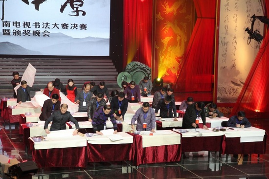 12月18日,“墨舞中原第二屆河南電視書法大賽決賽暨頒獎(jiǎng)晚會(huì)”在河南電視臺(tái)演播大廳舉行,來自全國(guó)各地的100余名書法精英進(jìn)入決賽,現(xiàn)場(chǎng)角逐等級(jí)獎(jiǎng)。