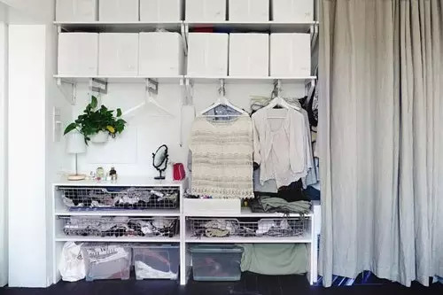 裝飾亮點:由于部分材質的衣物受潮之后容易起霉點,所以防潮尤為重要。日常還要替換穿著的衣物,最好用收納盒裝起來,再放到衣櫥里。此外,衣罩也可以發(fā)揮一定的防潮作用。