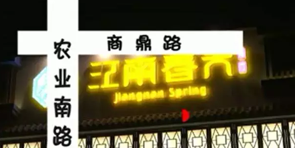 這是哪呢?西湖景、揚(yáng)州月、秦淮風(fēng)、蘇州韻、撲面而來一股江南味道啊,看到這么富有將江南氣息文字,你是不是猜到我們這一站將要去吃什么了呢?沒錯,這一站我們就來到了位于農(nóng)業(yè)南路商都交叉口向南的江南春天。