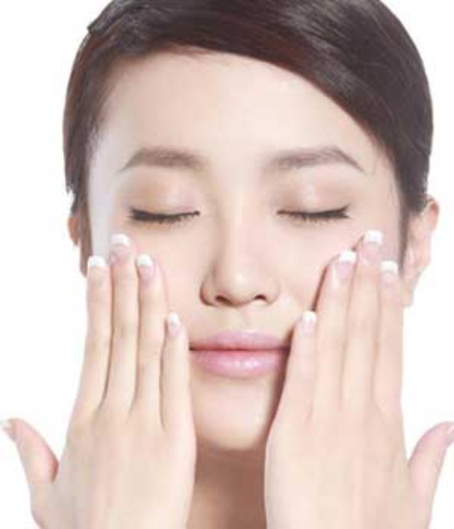 STEP 1:用雙手十指按壓顴骨的最高點,然后嘴里念出字母“O”的音,這樣有利于鍛煉頰骨肌。然后再用相同的手指按壓法,按住顴骨的最高點,嘴里念出字母“E”的音,這個時候能明顯感覺到臉部變得緊實了。堅持以上的兩個動作各30次。