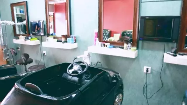 這里的環(huán)境完全為小朋友打造,小汽車小玩偶,還有休閑娛樂區(qū)域,隨時(shí)放映不停播的動(dòng)畫片,沒錯(cuò)這就是小盆友的樂園。除了這些,這里充斥著各種汽車元素,模型玩具,甚至連理發(fā)座椅都是豪車。