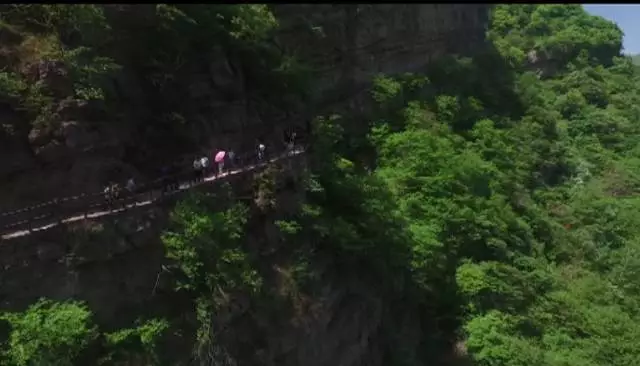瀑布高達(dá)100余米,從井口水簾洞落下,形成了自然奇觀,漫步在棧道之上,便有穿云破霧之感。在這里,遠(yuǎn)望可領(lǐng)略高山整體氣勢(shì)之壯美,近觀可品察,山石樹(shù)木形色質(zhì)紋之奇秀。