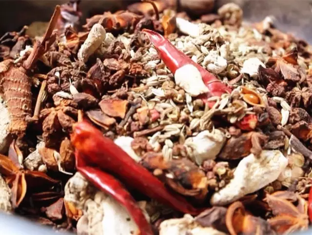 第一步就是清洗肉類,清洗的程度也影響鹵肉的口感,不過一天就要洗三四百斤的肉,這可是個不輕的體力活,直徑1.5米的大鍋中是老湯,眼前這鍋老湯已經(jīng)用26年了,散發(fā)著撲鼻的肉香味鹵香味,依次放入洗凈的肉塊和大料,除了常見的八角花椒良姜等,辣椒姜片的加入也增加了口感。