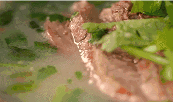 鍋中的湯燒開之后爐火要持續(xù)不能停而炭火的獨(dú)有香味也融入到了湯里面,碗底鋪上牛肉牛肚撒上些許調(diào)料,抓把香菜碎澆上一勺熱熱的鮮湯,還未上桌香味就征服了眾多吃貨,準(zhǔn)備好一塊鍋葵暖暖和和開吃了。