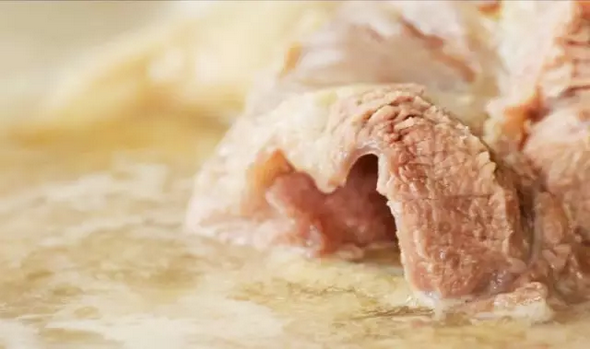 單用一大鍋清水不加入任何大料,湯鍋一天能煮大概七八十斤牛肉并加入一塊牛油來增加香味,砸開的牛骨則方便骨髓熬制出來。每天凌晨3:30入鍋到早上8點(diǎn)出鍋。