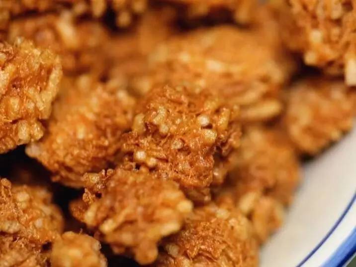 如果評選最難忘的洛陽美食,水席中的焦炸丸子應(yīng)該名列前茅。粉條拌上面粉捏成的素丸子,用小火炸的里外酥脆,撈出來時表面金黃還冒著熱氣泛著油花。