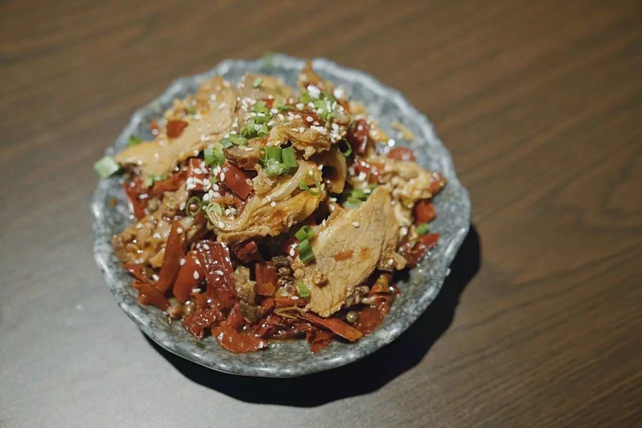 椒麻牛肉的辣度把小編給KO了,平靜地入口咀嚼后,覺得不過(guò)如此,但下咽之后,辣椒的后勁兒就上來(lái)了。