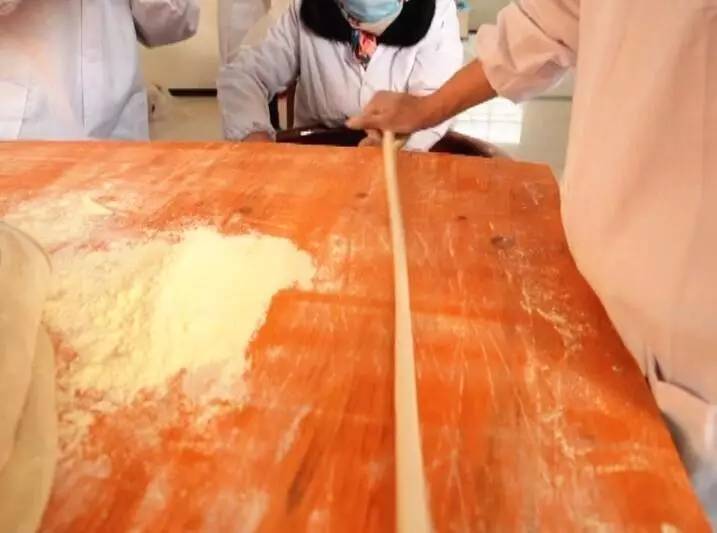 原本二三十厘米長的面條經(jīng)過三次掙面,竟然被拉到一米多長,整個(gè)過程沒有一根面斷掉,一根根柔韌潔白,如同細(xì)絲一般,讓人嘆為觀止。