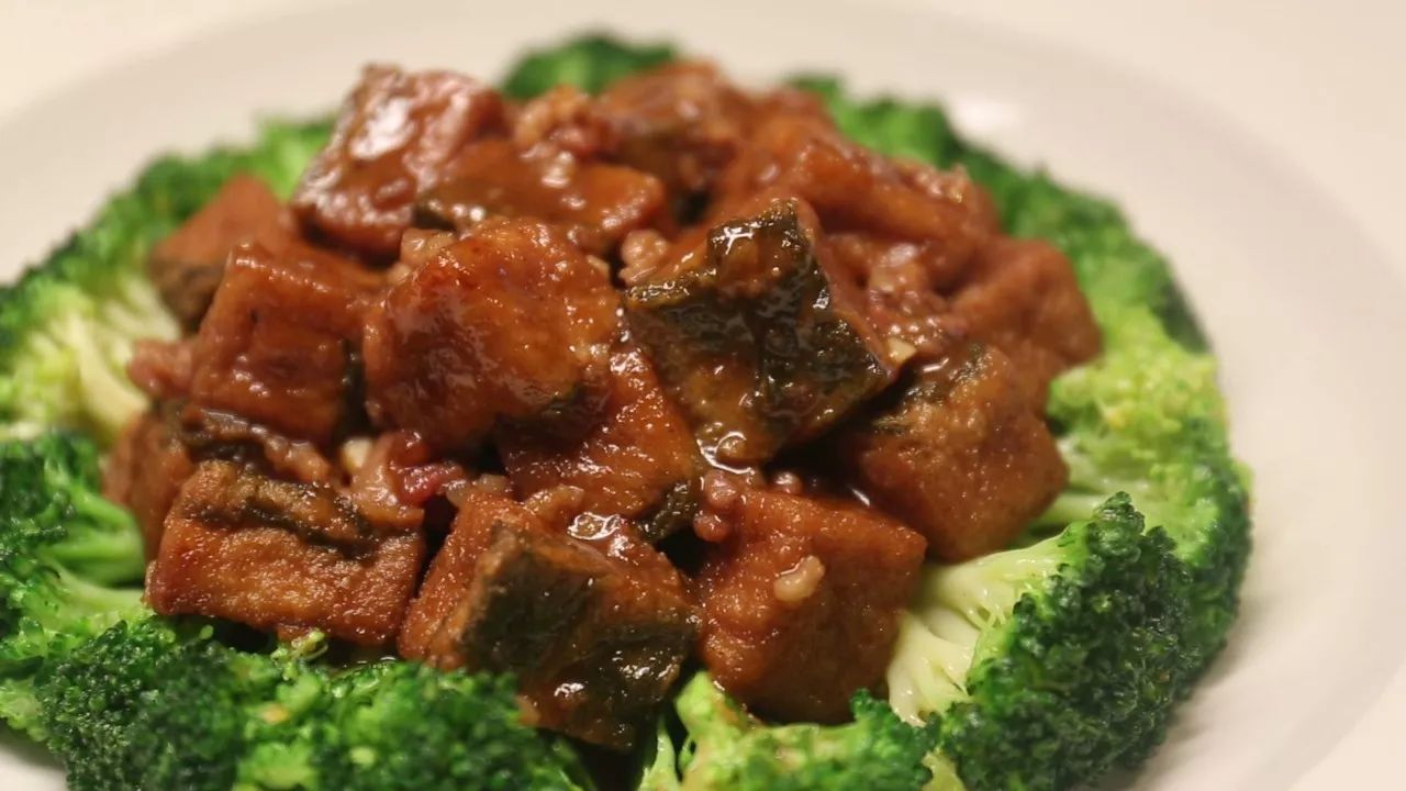 主廚研發(fā)的新式廣東菜——萬怡黑豆腐,乍一看很像豆腐泡,咬開卻是嫩滑的像布丁一樣的雞蛋豆腐。制作時還特意加入了海苔,也增添了幾分鮮香。肉末和高湯燒成醬汁裹在黑豆腐上,再配上入口即化的雞蛋豆腐,今天的晚飯穩(wěn)了!