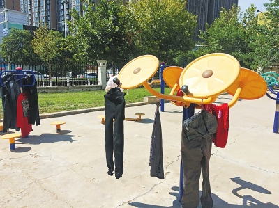 “一有太陽,公共健身器材上就有人晾衣服,想鍛煉一下都成了難事?!奔易〗鹚畢^(qū)未來路附近的廣發(fā)花園劉先生致電本報(bào),本來小區(qū)內(nèi)健身器材是讓大家鍛煉身體的,可是,卻成了居民的“晾曬寶地”。