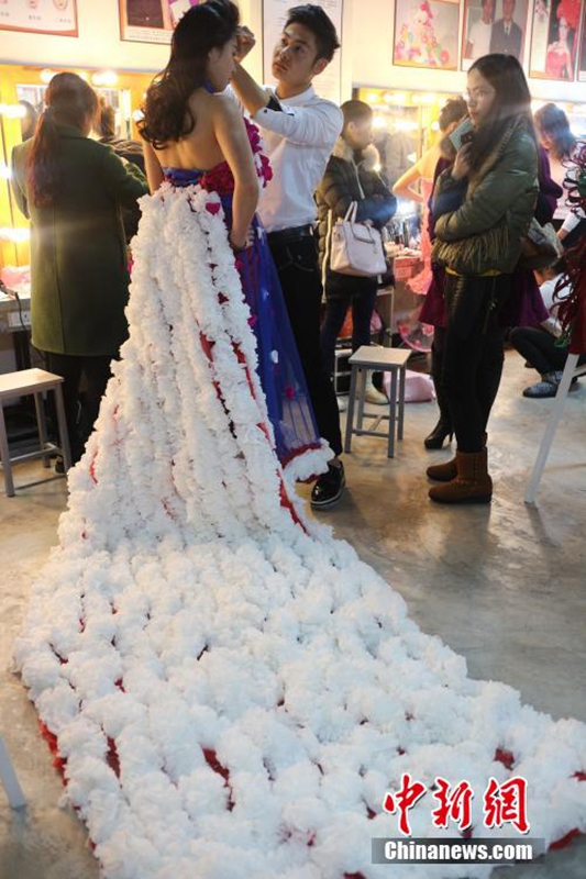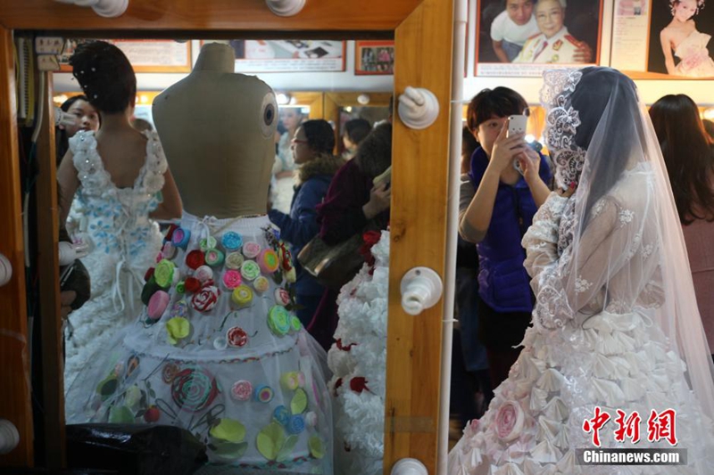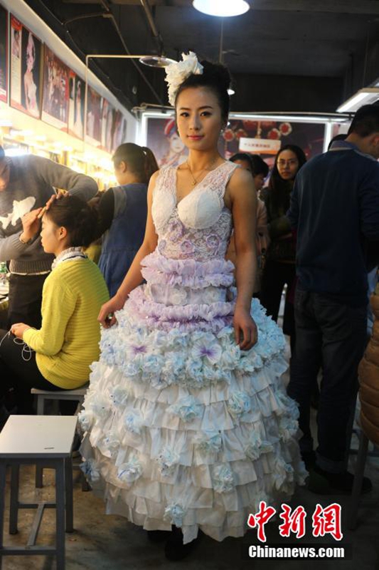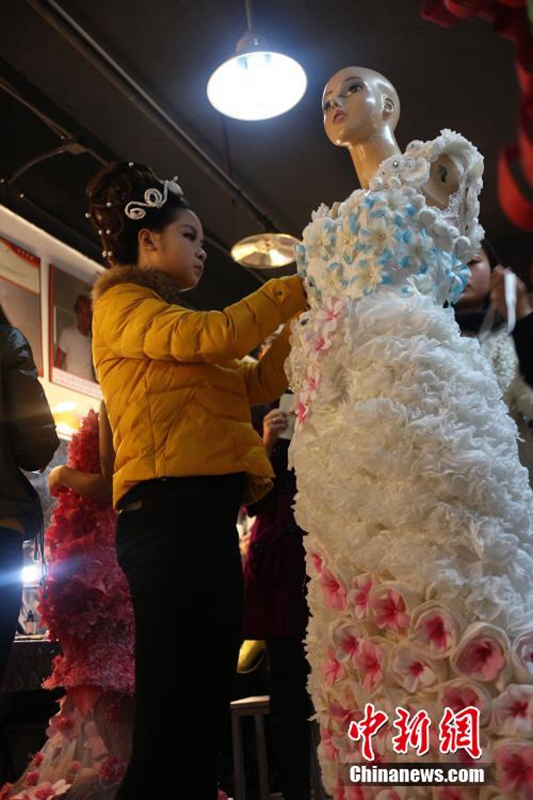 創(chuàng)意又環(huán)保 成都大學(xué)生用廢紙做婚紗