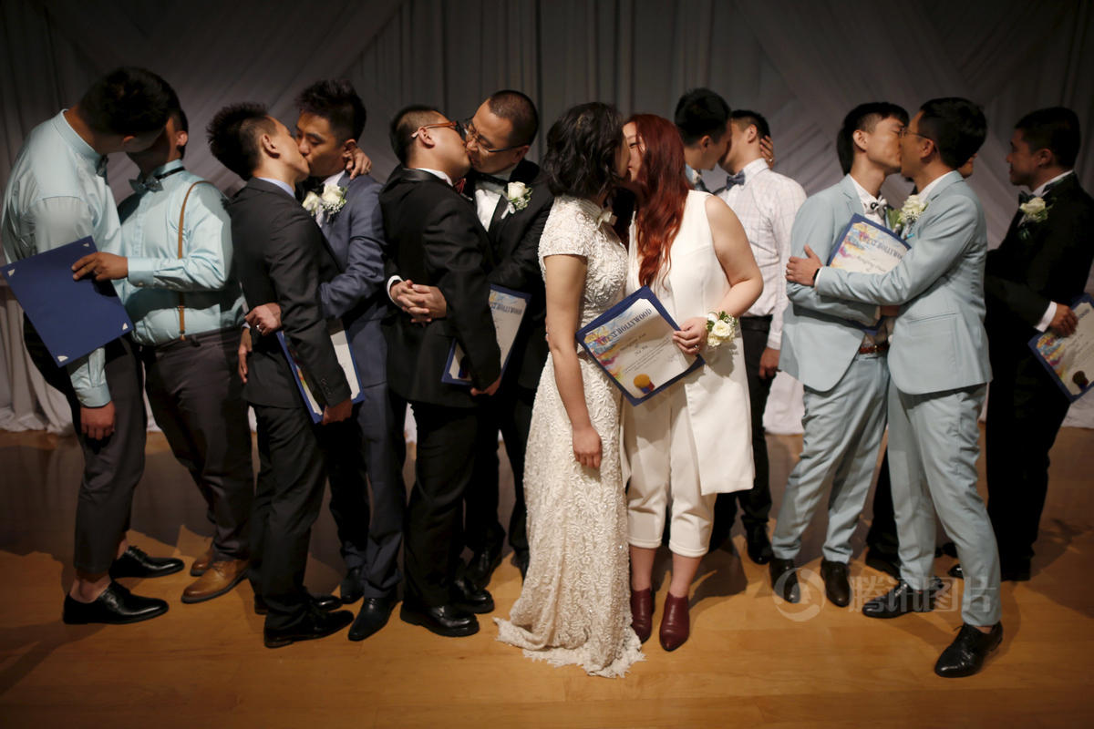 6月9日,美國加州洛杉磯,七對來自中國的同性戀情侶舉行集體婚禮,婚禮儀式由中國大陸一家互聯(lián)網(wǎng)巨頭資助。加州是美國同性戀婚姻合法的30個州之一,婚禮費(fèi)用均由贊助企業(yè)承擔(dān)。