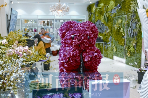 商戶陳玉稱,七夕的主角還是紅玫瑰。“去年流行‘抱抱桶’,今年流行‘抱抱熊’。”商戶何艷威稱,“抱抱熊”是用紅玫瑰制作的,這種玫瑰不是鮮切花,而是皂花,幾乎和真玫瑰一樣,但比真花更耐放,只要不碰水,能放兩年左右。