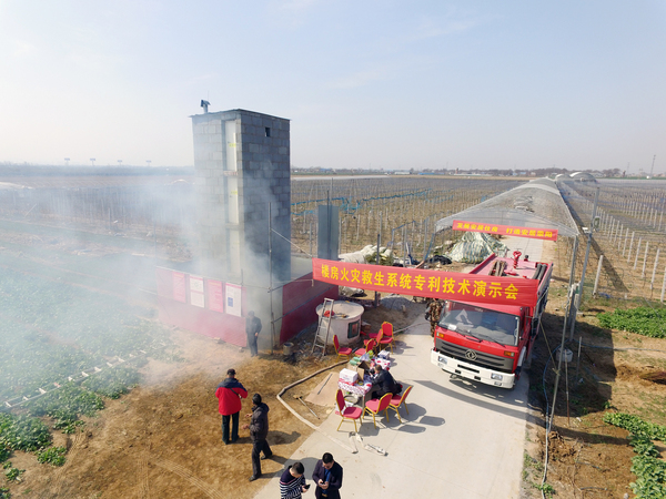 原來,這是在進(jìn)行樓房火災(zāi)救生系統(tǒng)的現(xiàn)場演示。
